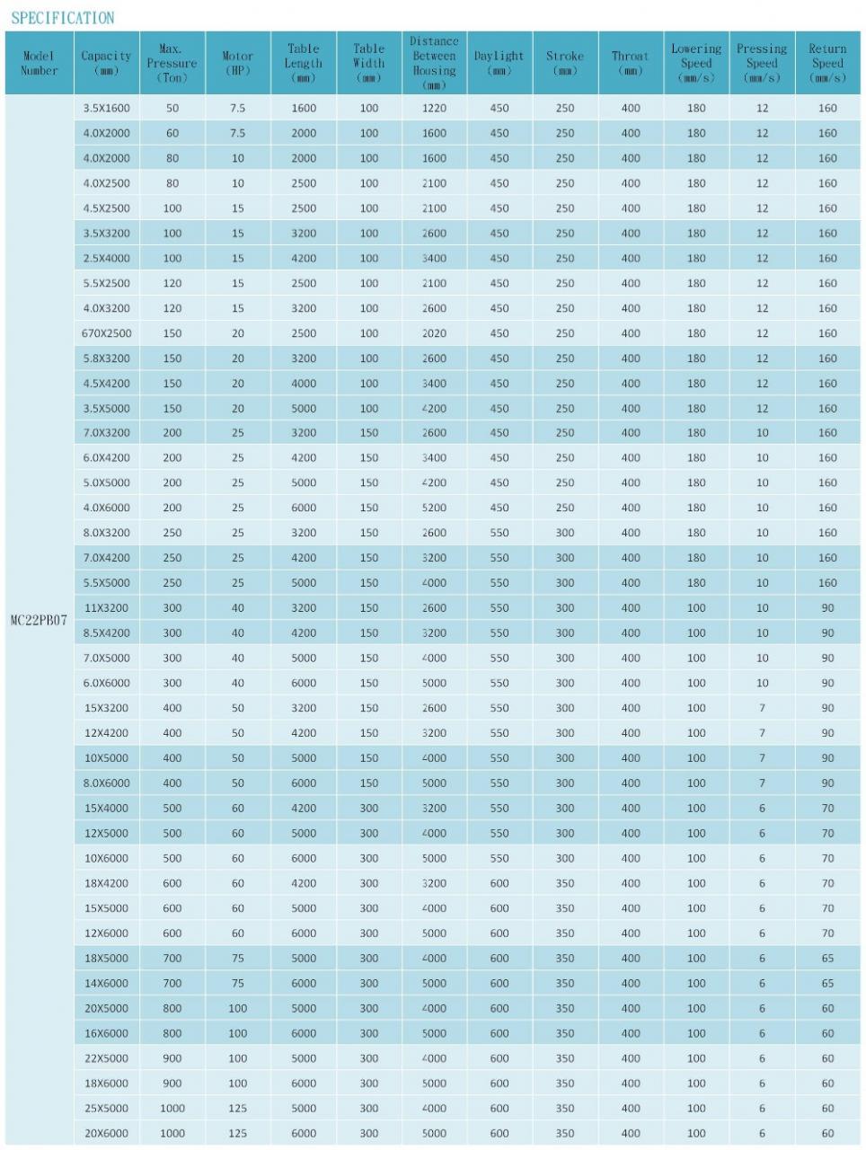 | 품목 번호 | MC22PB07 | 힘 | 유압 |