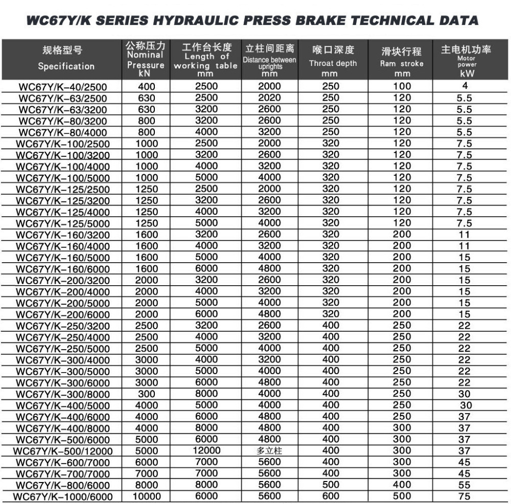 따라서 2mm 두께 x 2500mm 너비의 연강을 구부리려면 WC67Y-40T/2500 프레스 브레이크가 필요합니다.